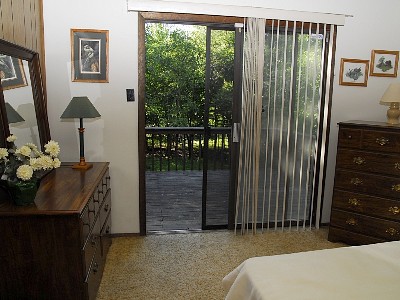 LARGE house, five bedrooms with queen and/or full size beds, two baths. Two-story home with cathedral ceilings, sleeps 12 comfortably. On each level: living room with queen size sleeper sofas, love seat and chairs, digital cable TVs with VCRs and CD players, DVD players. Telephones, radios, large front deck with large picnic table, large private back deck off master bedroom. Beautiful stone fireplace (upper level) & wood burning stove (lower level). Water filtering system.