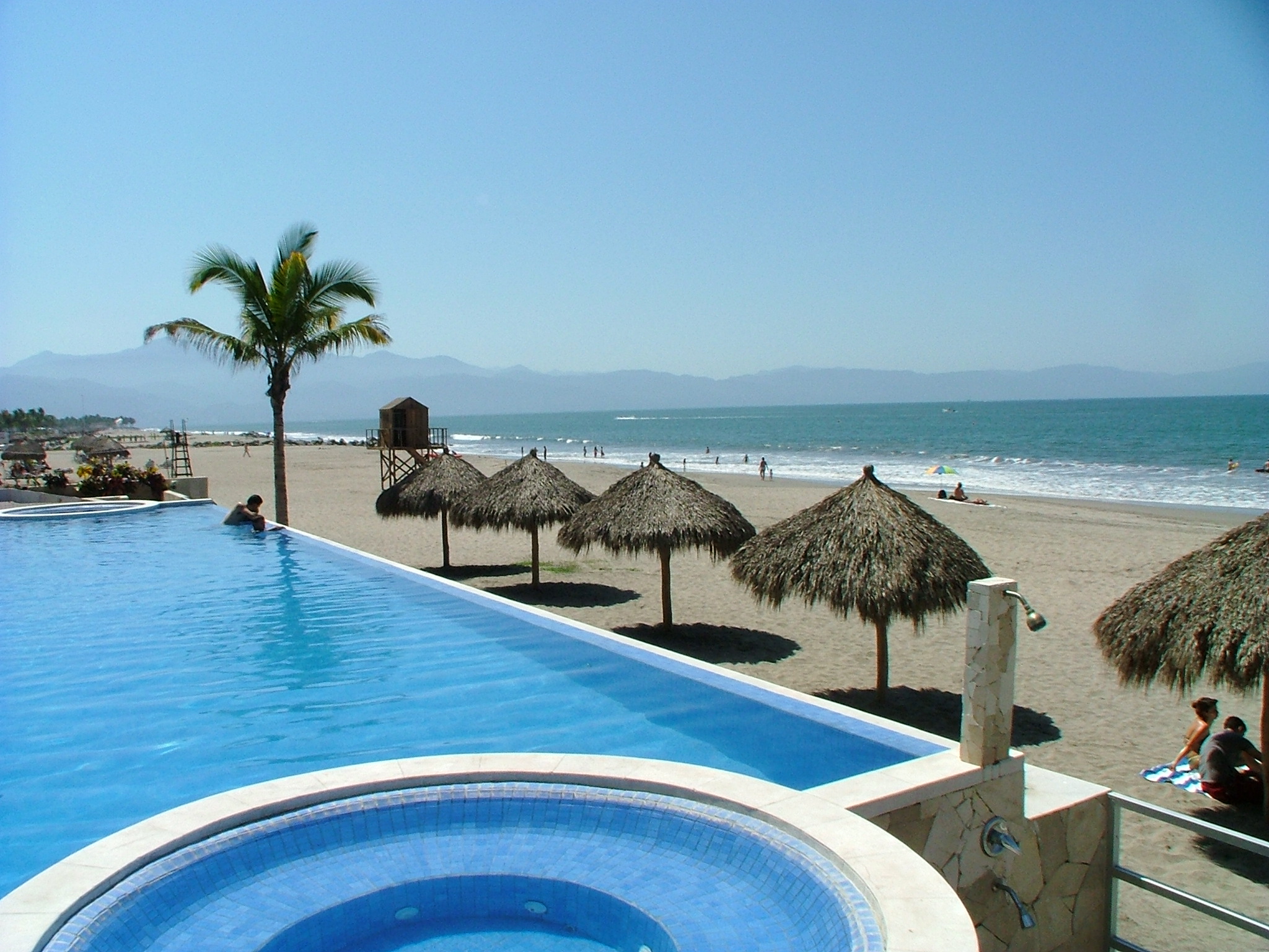 Relax in the heated beachfront infinity pool with two separate jacuzzi tubs or work out in the gym while taking in the ocean views. Just steps away a picturesque beach awaits. Stroll the one and half uniterrupted miles it offers and feel the soft sugar sand underfoot or walk out on the nearby breakwater and reach out to the sunset or capture the stunning beauty of the Sierra Madre mountains that ring the Bay of Banderas.