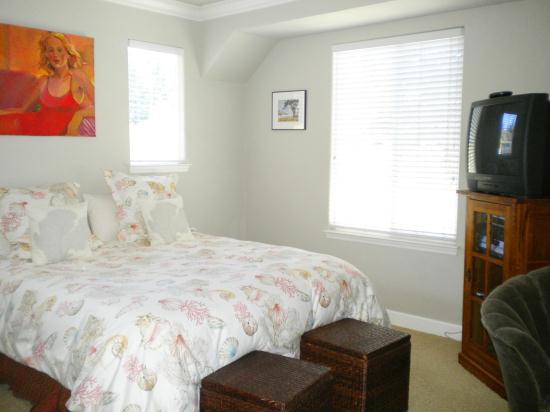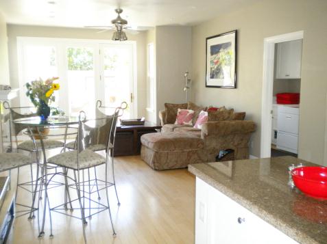 Everyone usually gathers in the Family Room. At one end, the Great Room has a gourmet kitchen with granite-tiled counters connecting with the Family Room. The Family Room also has glass doors to the outside Tuscan Fireplace room with several tables & chairs pulled up to enjoy the outdoor fireplace. On the other side of the fireplace is the cozy triangle hot tub for 2 or 3 people at a time, and around the corner is the elegantly tiled and private hot and cold outdoor shower, with a long flexible extra shower head for getting the sand off both kids and pets. Located just behind Lighthouse Field, a short 1 block walk across gets you to the Lighthouse Point and great surfing. There is also a pet friendly beach, called “It's Beach” ready for walks and fun for both pets and owners. It's about a 10-min walk to the Santa Cruz Wharf with wonderful shops and restarants. And about a 12-20 min walk through Nearys Lagoon to the Pacific Garden Mall. (12-20-mins because guests often stop on the white boardwalk to look at the birds in the Lagoon.