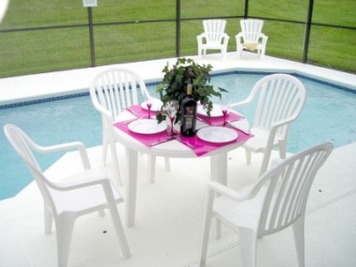 This is a five-bedroom three-bathroom villa with 2600 square foot of living area including a fully equipped games room, which has a 6’x4’ pool table, air hockey, table football (foosball) and electronic dart board. The villa will comfortably sleep ten people, but will also accommodate twelve people on request, complete with a large heated pool and extended deck area. The villa is fully furnished to a high standard, and includes air conditioning in every room and a remote monitored security alarm system, both the master suite and bedroom five have en-suite bathrooms, a further third bathroom serves the other three double bedrooms. The large living area is open plan in design and comprises kitchen, breakfast & dining area, lounge with cable TV & video/DVD player. Patio doors off the family room & master bedroom lead on to the covered lanai and pool terrace, three further bedrooms have TV’s fitted, with these features it is an ideal villa for two families to holiday together, this villa has everything you need to provide home from home comfort for you and your family to have a fantastic holiday in central Florida at very competitive prices and is a world away from overcrowded hotels.