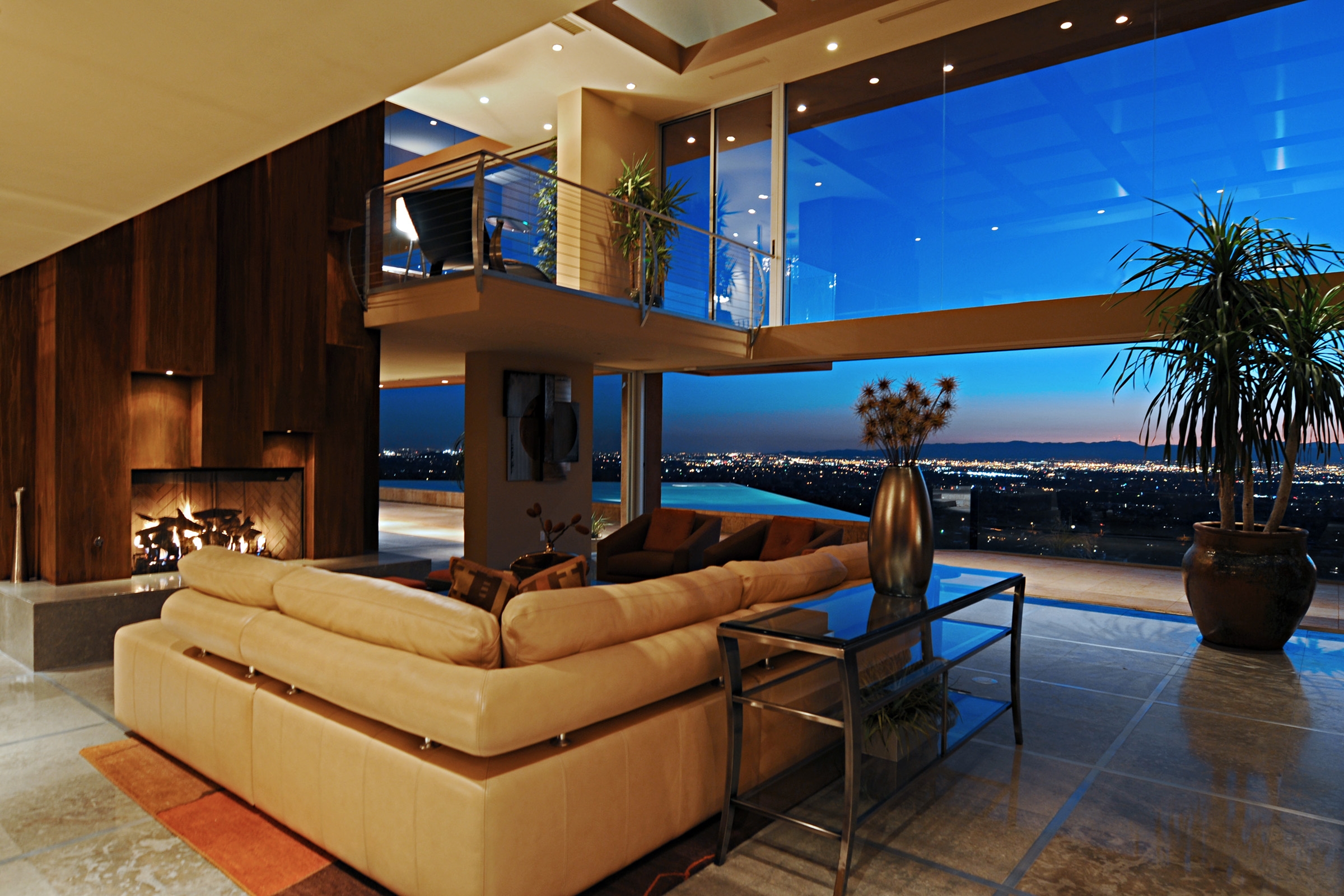 A cascading waterfall against the native red rocks provides a backdrop to the spacious outdoor kitchen and barbeque area, and at the main entrance, a veil of water spills down next to the massive front door. Perhaps most spectacular of all is the phenomenal negative edged pool, which soars out into the skies. The triangular shaped one hundred percent infinity edged pool spills over in all directions, and at the far point lies a submerged Jacuzzi.