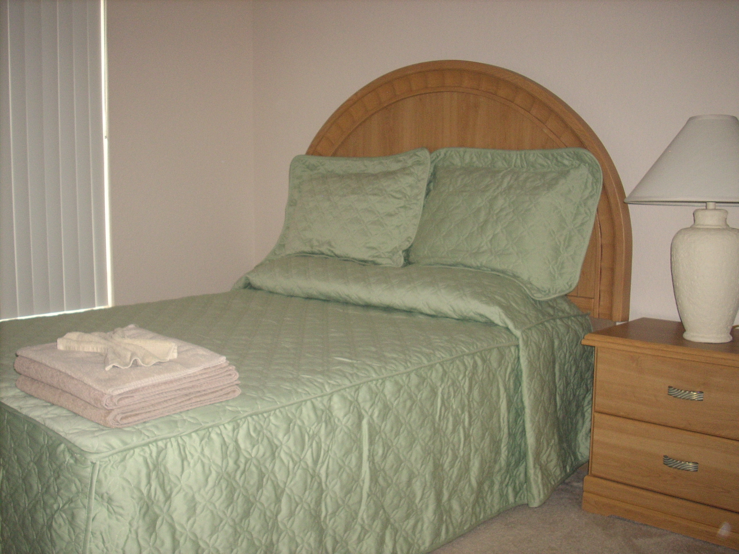 We have a private, fully screened, South West facing 30' x 15' pool which has the advantage of opaque double screening on the lower portions and sides for added privacy. This mesh screen allows the sun's rays in, but keeps the bugs and leaves out!! There is a 4 foot high Safety Fence between the pool and the main building (which can be removed if not required) and in addition the patio doors leading out to the pool area have extra child alarms fitted which sound each time they are opened. The pool can be heated if required, and we would recommend this between November and March. Luxury sun loungers are provided and ready for your relaxation by the pool, with a towel rail to dry your wet swimwear etc. There is a covered lanai (patio) for those who prefer some shade, complete with patio table and chairs (extra chairs can be found in the garage) plus a light and ceiling fan for dining "al fresco." There is also direct access from the pool to the main bathroom, which is always handy when you have children.