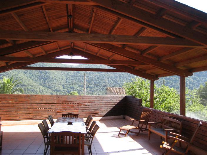 The whole house is rented entirely (full rental house) for a group from 6 up to 11 people. It's a spacious house with four bedrooms, two bathrooms, a fully equipped kitchen, a large living room - dining room with TV, TV satellite, DVD, air conditioning, fireplace and a big garden of 1.500m2. Outside there is a large wooden covered porch with barbecue which is ideal for eating outside all year round, an enormous private swimming-pool of 10x5m and garden furniture. There are breathtaking views of the mountains.