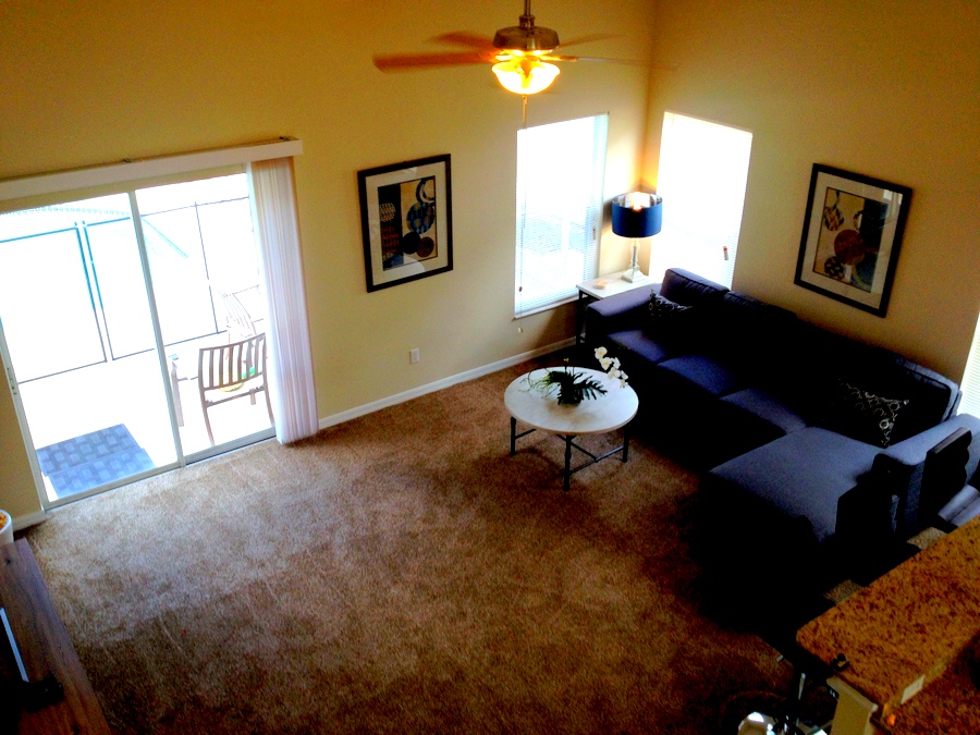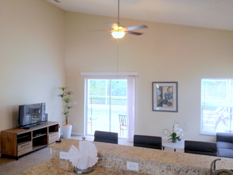 The family area has a large sectional sofa perfect to relax and unwind, read a book, watch your favorite televsion show along with a large screen TV. With the gorgeous private pool and spa just outside your patio doors its unlikly you'll want to be inside when you can swim and soak up that Florida sun.
