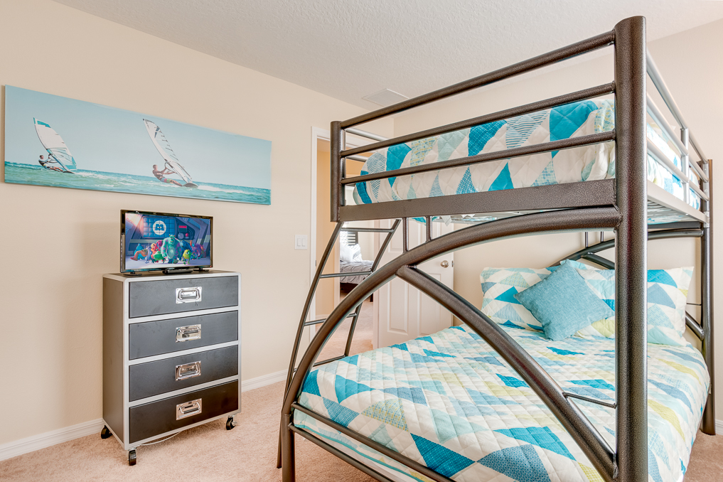 Room 5 - Bunk bed with a twin over a full bunk along with a flat screen television