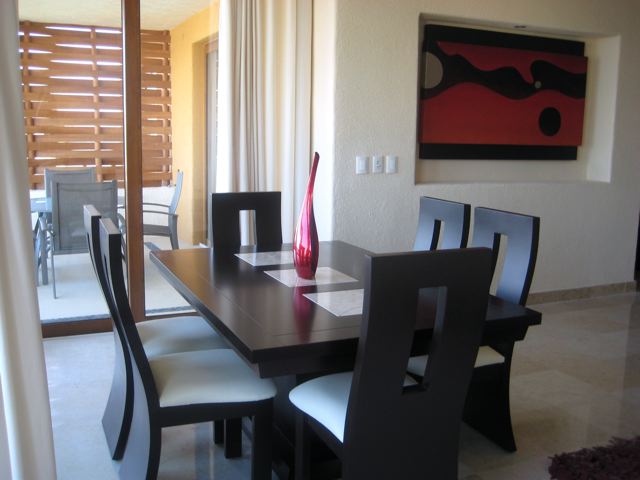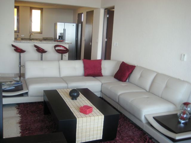This two-bedroom, two bathroom luxury condominium is located on the third floor on the Huanacaxtle building of the Punta Esmeralda residential development. It has large terrace with lots of horizon view and great indoor-outdoor living. The two bedrooms have an ocean view and their own deck. The galley style kitchen is strategically located to afford a double view which can also be enjoyed from the living/dining area, thanks to a northwest facing window that frames the Sierra Vallejo mountains.