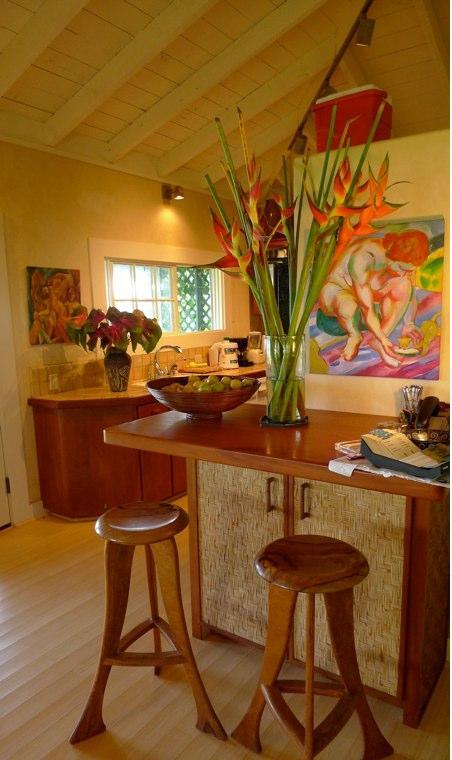 Within 30 feet form the waters’ edge, this guesthouse comprises of 2 bedrooms, 2 bathrooms, open living area, dining area with fully equipped modern kitchen, large covered deck and barbecue which provides for a great outdoor dining area and offers stunning views along the coastline and the west Maui mountains. Nice furniture and decoration. Ideal for windsurfing, surfing, kayak, snorkeling. Beautiful gardens. Close to all services, shopping and restaurants. White sandy beach. Windsurf or Kite surf directly from the beach. Bike route passing a short distance outside the gated estate.