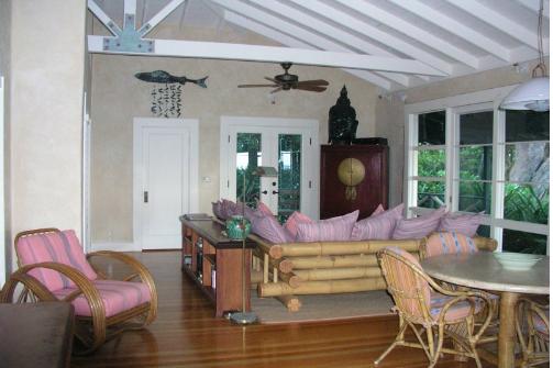 Approximately 2200 sq ft. This Beach Cottage is located in Sprekelsville, on a 4.2 acre private property with 700 ft of beach frontage. It is 5 km from either Paia or Kahalui.