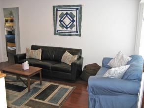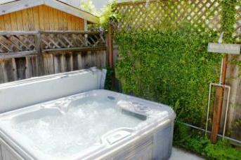 The Sand Dollar: Vacation Rental sleeps up to 9, 3-bedrooms, 2-bath. Ideal location 6-houses to the Pleasure Point surfing park and fun walking & biking paths. 3-short blocks to the large sandy 26th Ave Beach. Wonderful quiet street with little traffic. This Home is beachy and sunny with hand-crafted moldings, finishes and cherry hardwood floors. New kitchen has marble counters, stainless appliances, gas stove, dishwasher, and a dining area with big multi-paned windows looking onto the comfortable backyard. Backyard has a large hot tub, outside hot & cold shower, big stainless BBQ, and patio dining tables & chairs. There are two bedrooms downstairs: one with a Queen bed and maple furniture, and the other sleeps five with two comfy Twin bunk-beds and a Twin trundle bed. The downstairs bath has shower/tub. Master Suite upstairs is spacious and elegant with King bed, master bath with shower, and a private deck. Upstairs also boasts a sundeck with two chaise lounges for relaxing. Hear the surf from the decks. Hang out and relax with house games, puzzles and books.