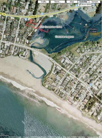 Coastview Beach Haus: Sleeps up to 11 in 3-bedroom, 2-baths. This is a new home in our network of friends and it is just wonderful. It has both Ocean & Corcoran Lagoon Views, located just opposite the beach, up a private gated driveway, Great location, easy level walk to beach, fun outside flagstone patio with great beach and lagoon views and a gas BBQ, with lots of seating and nice flowers. The fenced-in Back yard has an Outside Hot & Cold Shower. Pets OK
