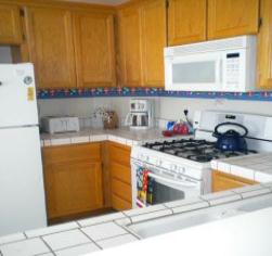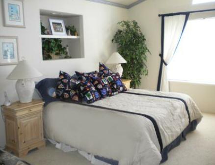 The spacious & vaulted ceiling Living Room has a comfortable couch and 2 chairs. There is a 6-person table in the Dining Room open to the Living Room and this area has white, plush carpet. It is a wonderfully relaxing home for family get-together's. & wedding guests, thought no weddings at the home. The fully equipped kitchen has a Bamboo frame with glass topped table for 4.The kitchen also features a New range with convection oven. It is next to the fun Family Room, with a plush sectional couch and T.V./DVD/VCR and a fireplace. Plenty of CD's & a special ocean music CD.