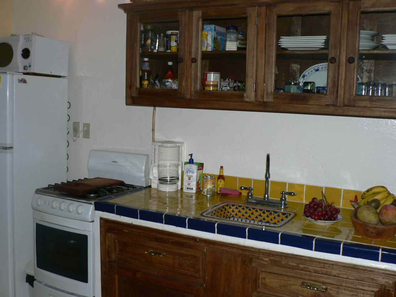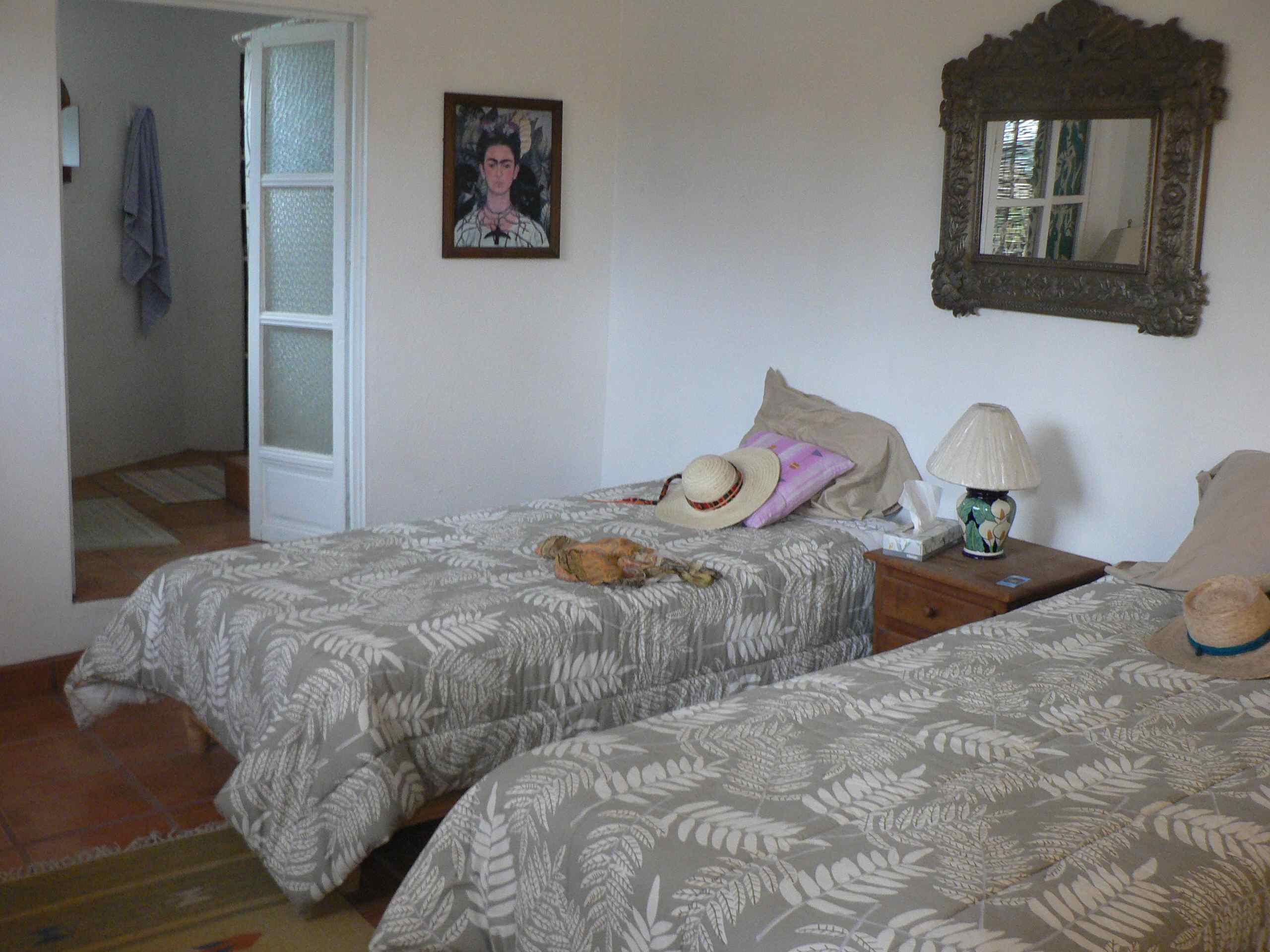 The main house has 4 bedrooms, 2.5 bathrooms, and sleeps 8. There is a very large fully equipped eat-in kitchen, with an antique cedar table, which can sit 8. All rooms are newly refurbished, and the kitchen has all new appliances. Sinks are of a Mexican design with eclectic tile work. There are 3 double beds and 2 single beds.