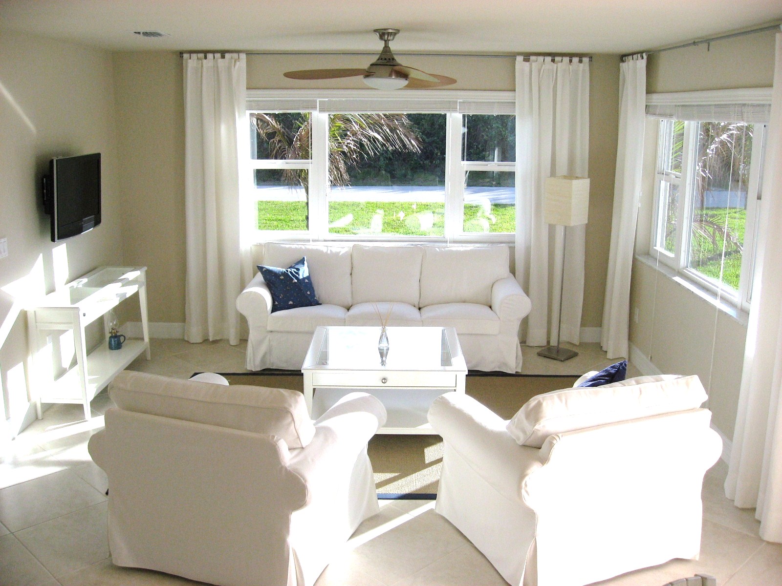 Experience island life at Sandy Toes Beach Rentals condos, a 2 story building with just 3 luxury rental condos located directly across from the beach! By the seaside town of Vero Beach, on Florida’s east central coast, visit the Kennedy Space Center, Lake Okeechobee, Disney World and more as a day trip! Unlike typical tunnel condos, the spacious 1100+ square ft CORNER condos with views from 3 or 4 directions, instantly calm and relax. Condos feature a living room with comfortable couch and chairs with a 32 inch flat screen TV, dining area, large granite counter top kitchen with upgraded stainless appliances plus dishes/pots/pans, a hypoallergenic king bedroom with 19 inch flat screen TV, separate office with desk, 2 bathrooms (one with shower only and one with tub only), personal washer/dryer, quiet central air-conditioning and heat, off-street free parking, free wireless Internet, and a completely smoke free property! These not owner lived in luxury condos are geared to please the discriminating seeking an immaculately cleaned, modern, island themed getaway rental condo. Visit our website for videos of each condo! Children or pets are not permitted. Maximum capacity of 2 guests only, please per condo.