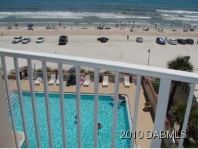 Daytona Beach Club is located directly on the ocean. Enjoythe beautiful ocean views from your private balcony from this 5th floor unit located conviently next to the elevator. Walk right out to the beach or enjoy enjoy the view from the beachfront patio and large pool. Please note the washer and dryer are located right by the elevator on the first floor.
