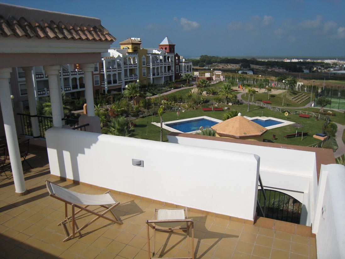 Luxury apartment on golf course for 5 persons with 2 bedrooms. Has a terrace and a solarium with beautiful views of the Atlantic Ocean, the river Guadalquivir and Doñana National Park. The complex has a communal swimming pool and child recreational areas. Completely furnished with air conditioning, satellite TV, parking garage and an elevator.