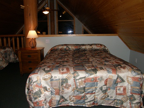 The chalet is over 1,100 sq ft of spaciou living including a full kitchen and upper loft. The cabin has a full bathroom on the main floor as well as a half bath and soaker tub in the loft.