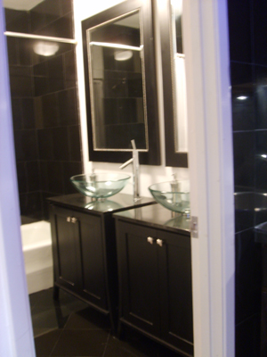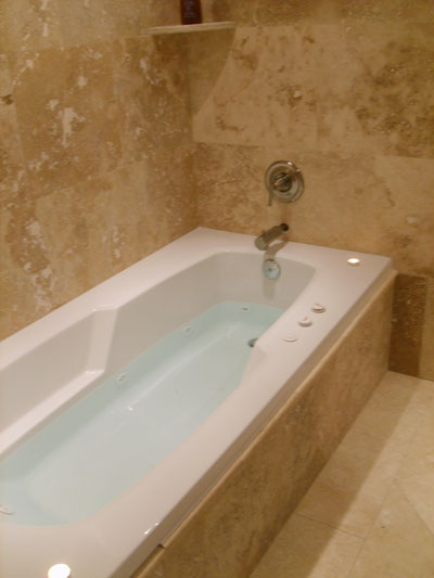 - 1 BATHROOMS: Granit/marble/travertine throughout, bath tubs, showers, Bath-Linens. 1 bathrooms where three of them have Travertine throughout