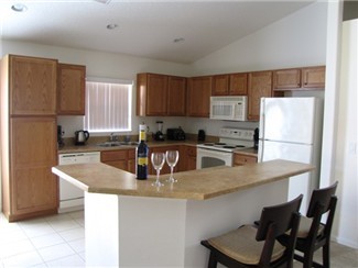 Speaking of kitchens, this villa has a fully-equipped kitchen that has all the amenities that you’ll need to prepare a delicious meal for family and friends. All of the appliances are modern and include a stove with a large oven, refrigerator with icemaker (perfect for a tropical drink), microwave, dishwasher, toaster, coffee maker and tea kettle to name a few! The cozy breakfast nook has a high table that seats six comfortably and a counter eating area for those who are grabbing a quick bite to eat!
