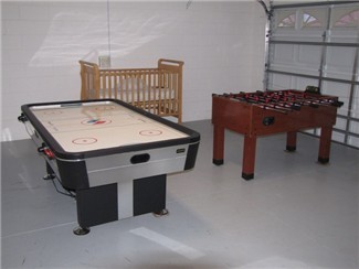 Rainy days don’t have to be a bummer anymore thanks to the game room that’s equipped with a dart board, air hockey table and foosball table. However, if you’re more into retail therapy, the Prime Outlets are just a short trip from the house.