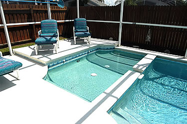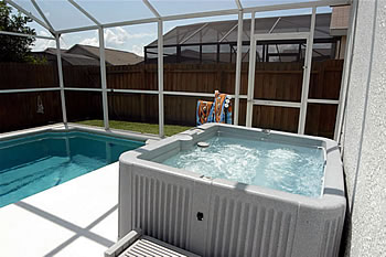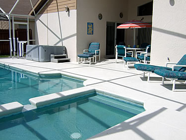 The Pool Area with Heated Swimming Pool, stand alone Hot Tub, separate Children's Pool and covered Lanai (Patio) is fenced to give you privacy - You are not overlooked from any side!