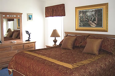 2nd Master Bedroom has an American Queen-Sized bed with pillow topped mattress and quality bedding, 2 bedside cabinets with lamps, dresser with mirror, chair, ceiling fan, LCD TV with Cable Channels, DVD Player and a telephone.