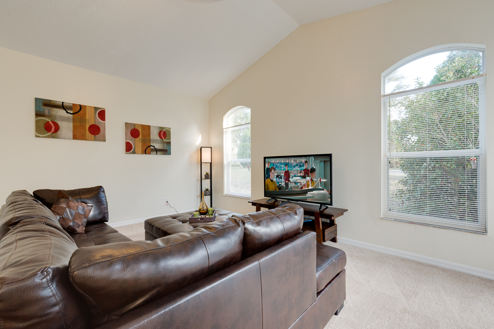 The pool here is a little larger than most vacation homes and sparkling, cool waters will be a welcome respite after a busy day enjoying Orlando’s many theme parks and attractions. With no rear neighbors your pool time is your time! The best part of all is the pool is solar heated!