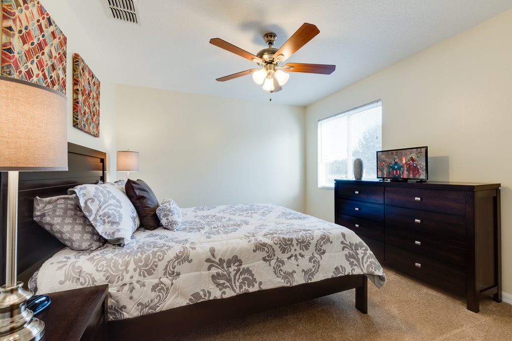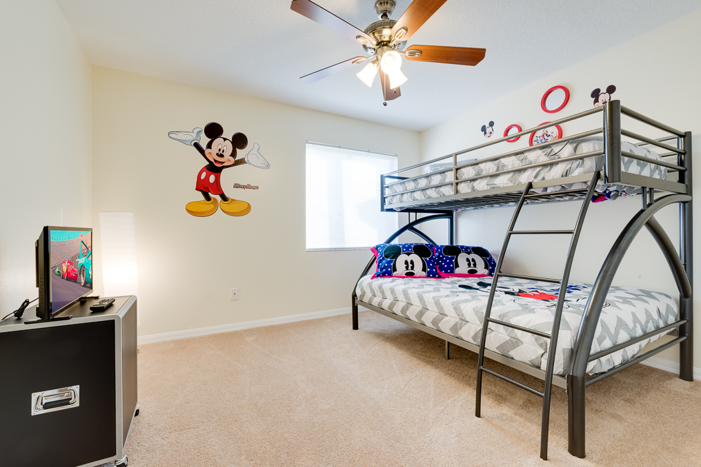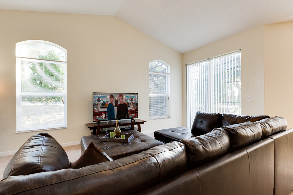 There are two living areas in this home with soft leather couches. The living / kitchen area features a flat screen television for unrivaled comfort. The sliding glass doors give you immediate access to the pool area from the kitchen or living room so that you and your family will always feel part of the action no matter where they choose to relax.