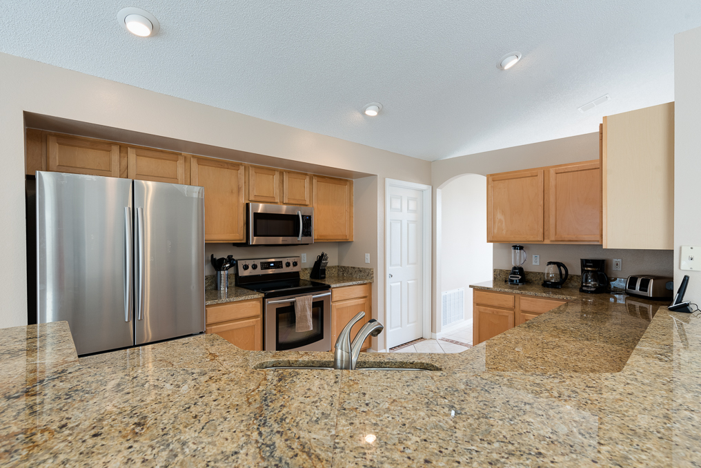 Fully equipped kitchen is so nice to come to home to after a long exhausting day in the parks. The beautiful granite counters and stainless steel appliances are a dream for the for the cook in your family