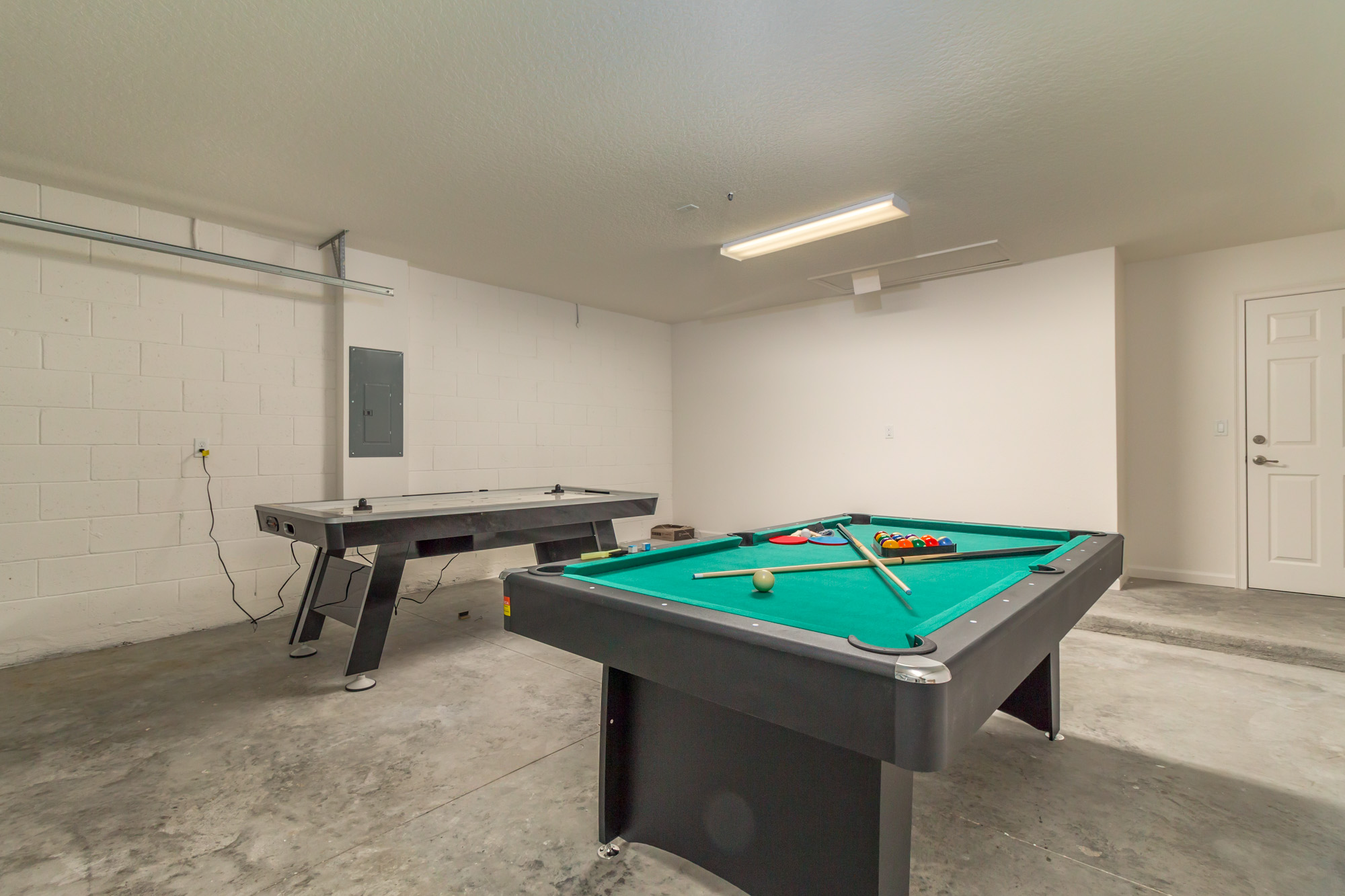 Your game room is a great place to pass a quiet evening or for your children to entertain themselves a bit playing air hockey or a game of pool. The pool table converts to ping pong for added fun.