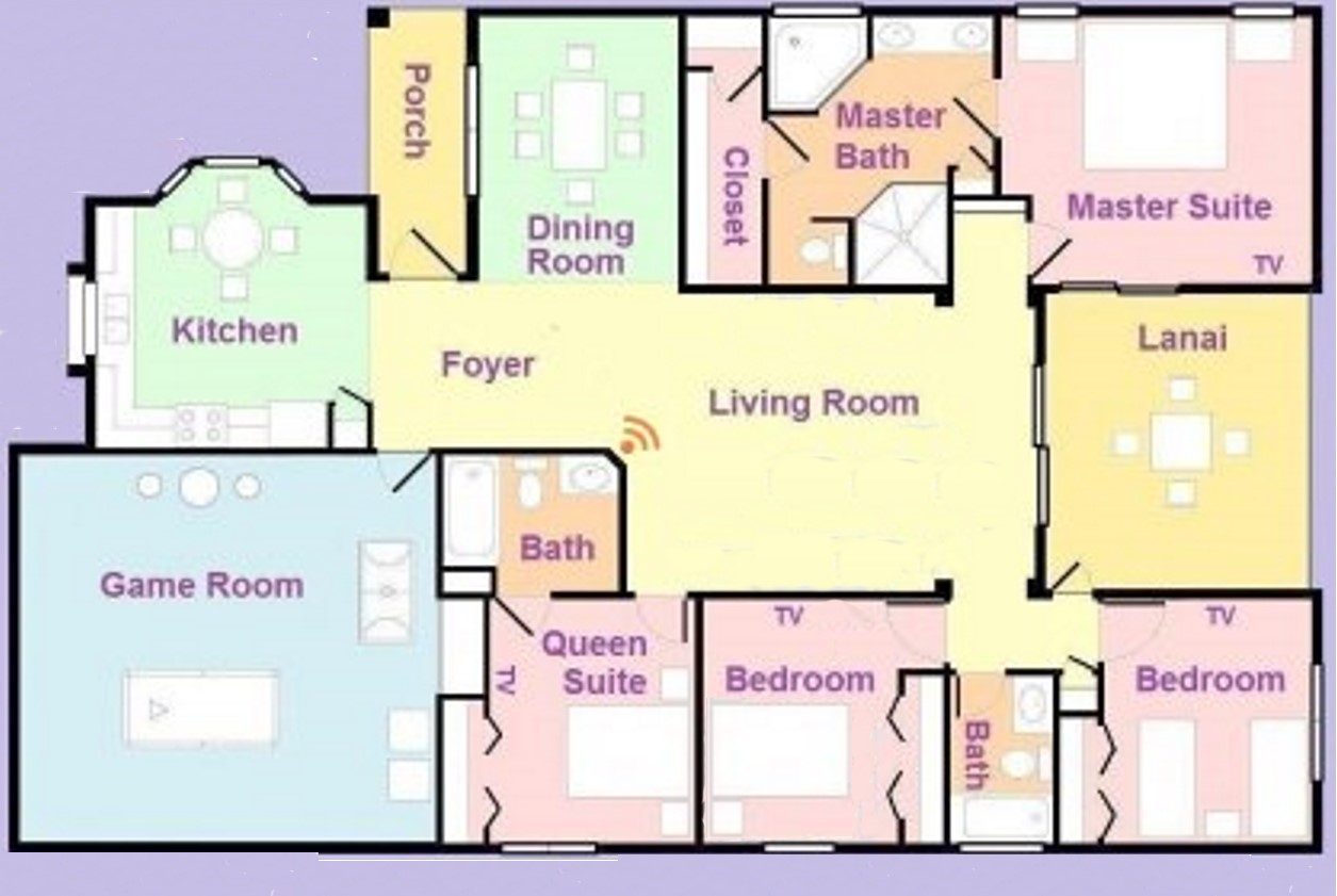 The primary Master bedroom has a Sliding Door leading directly out onto the Covered Lanai and Pool. The regular Bedrooms both share a third bathroom, this bathroom also leads directly onto the Pool Deck to allow access to the Bath and Shower after swimming.