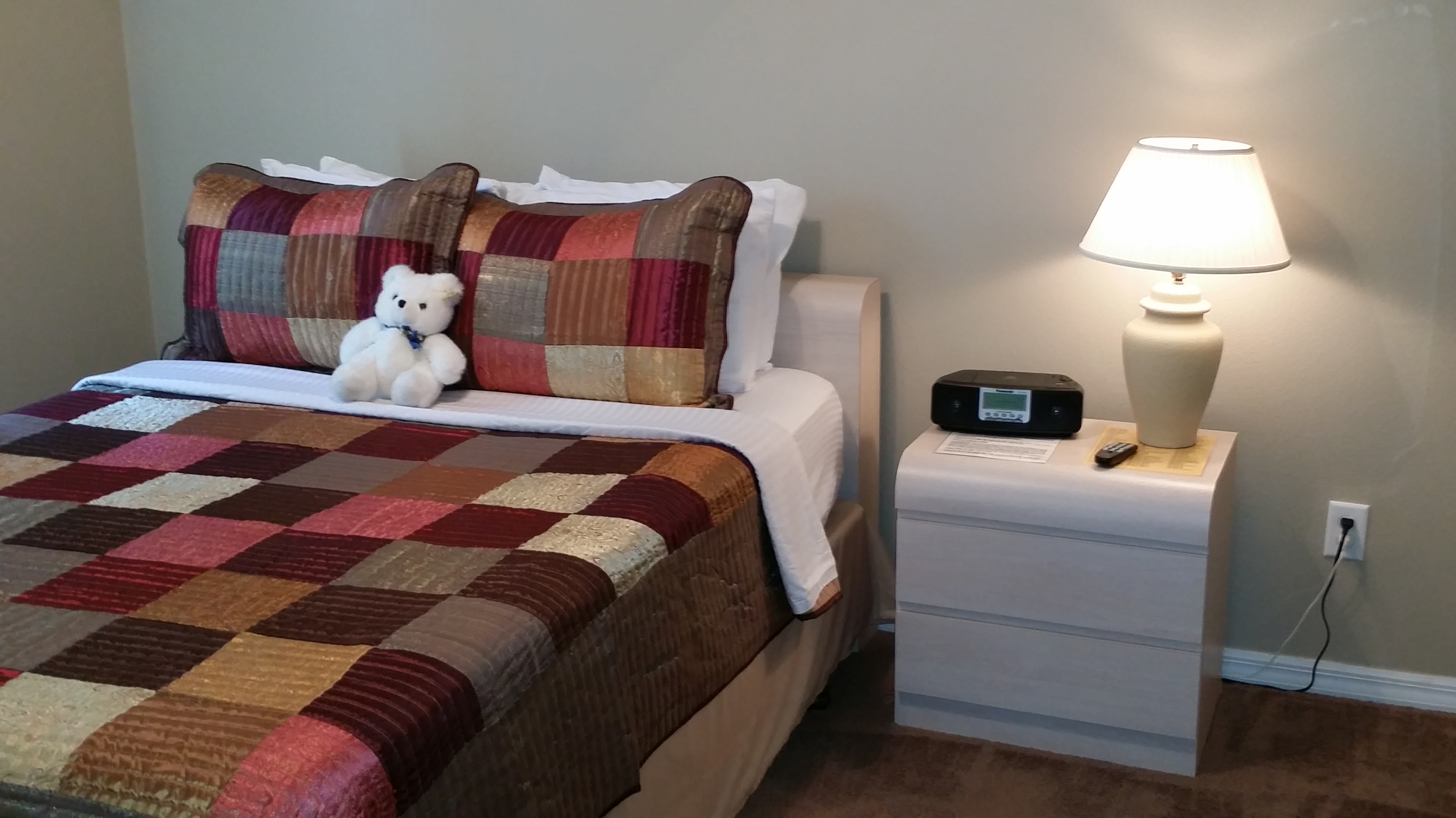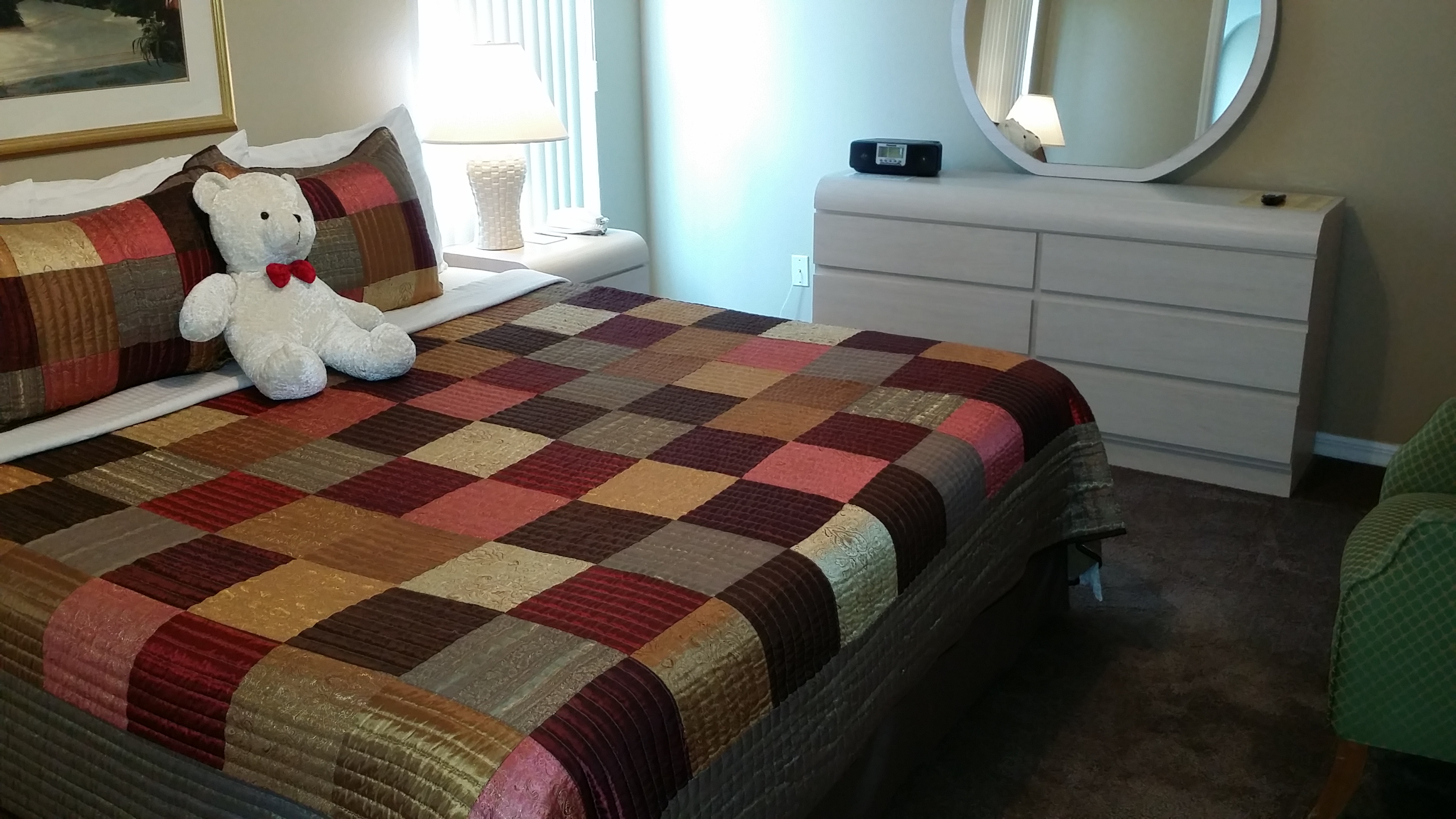 There are 4 bedrooms in this home. The 1st is the Master Bedroom #1 which contains a king-size pillow-top bed and has an ensuite bathroom. The 2nd is the Master Bedroom #2 which contains a queen-size pillow-top bed and also has an ensuite bathroom. The 3rd bedroom contains a queen-size pillow-top bed and shares an adjacent bathroom. The 4th bedroom contains two twin beds and shares the adjacent bathroom.