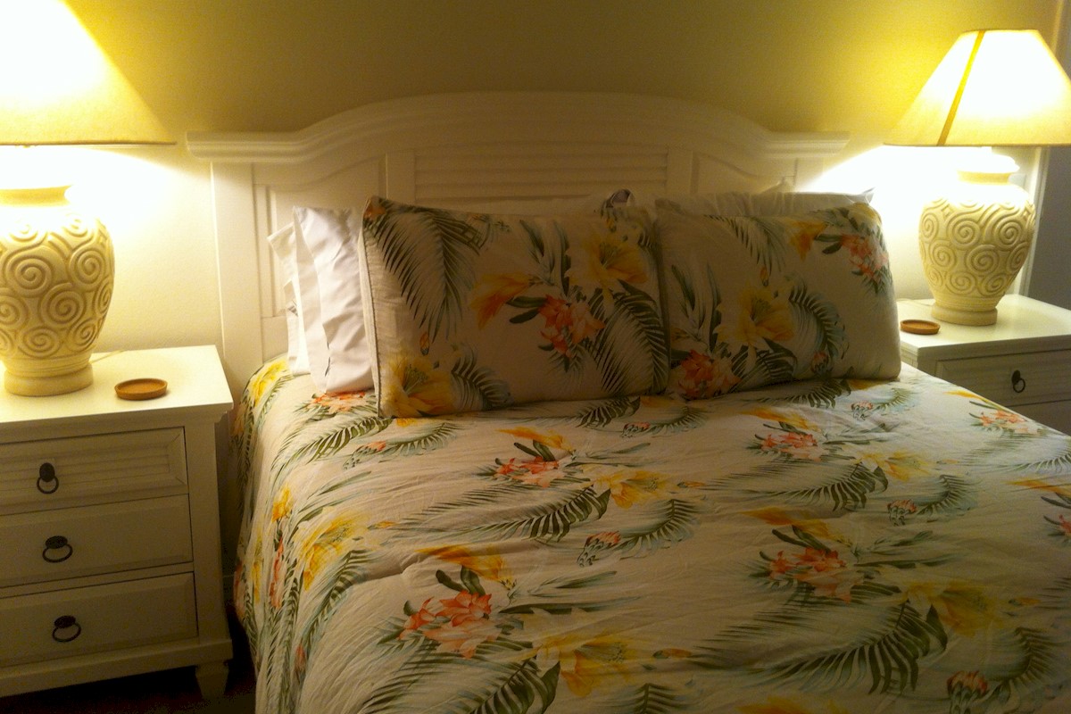 Two beautiful and tastefully furnished bedrooms each with a queen sized bed dressed with high quality 'Tommy Bahama' bedding. Bedside nightstands and dressers plus an en-suite bathroom attached to each queen room, the master also houses a large walk in shower, large bath and walk in closet. The second queen has a shower/bath.